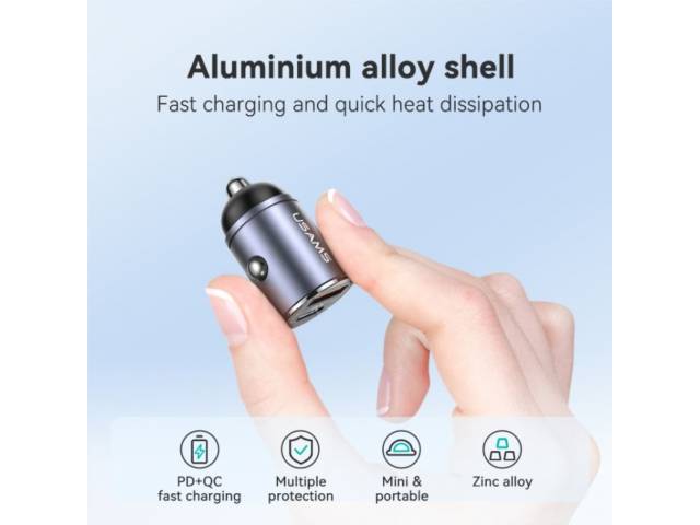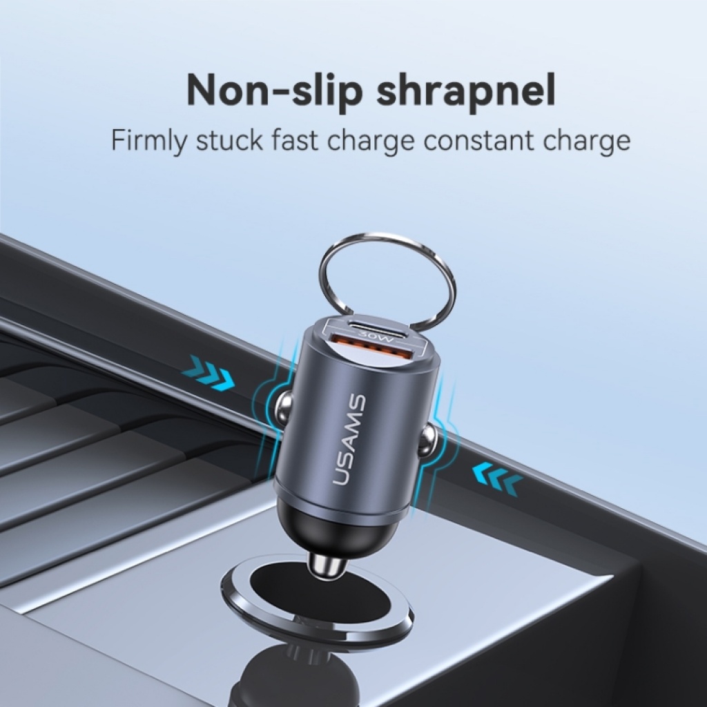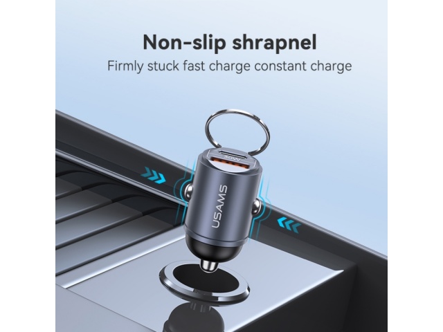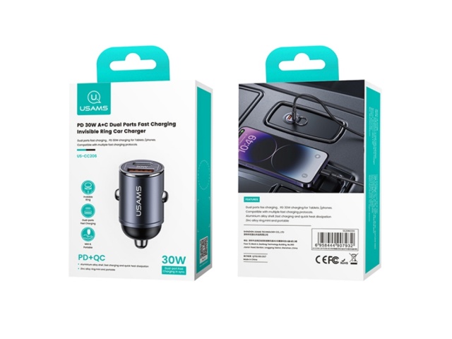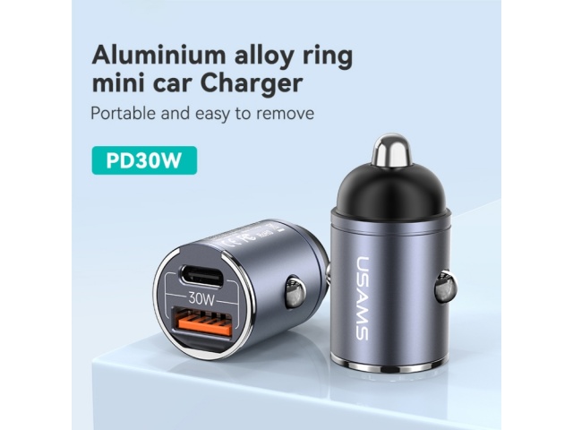 Cargador Auto Mini C38 30W USB A + USB C C/Anillo Negro CC206 USAMS
