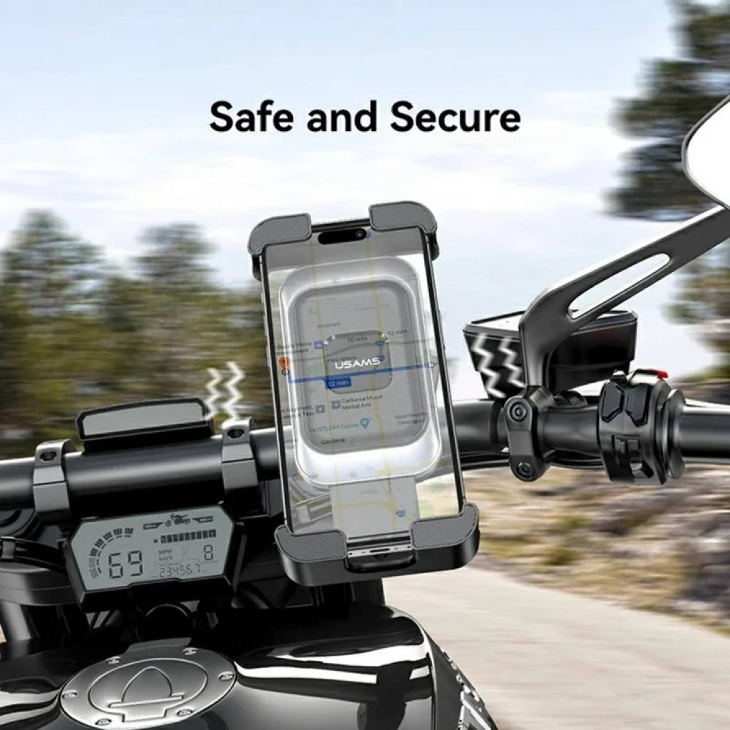 2. Abrazadera 2 en 1, compatible con el vástago del espejo retrovisor o el travesaño del manillar.