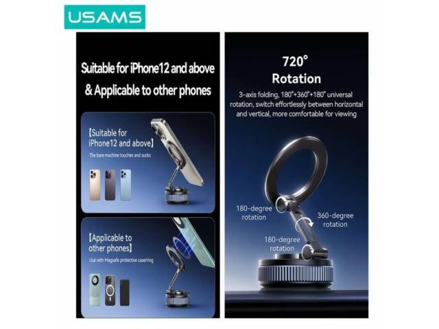 Soporte Vehicular Magnético Succión al Vacío 720° ZJ084 Negro USAMS